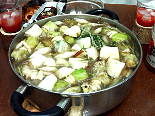 今年もやってきましたヨv 闇鍋パァァリィィ!! 場所は前回同様、Sさん邸をお借りいたしました。 上の写真を見てもわかると思いますが、美味しそうでしょ♪ いや、ホント美味しかったんですvv 今までで一番だったんじゃないのか?? 汁のベースはなんと「比内地鶏スープ」ですvv その後は、味を変えて「豆乳ベース」にしました。 でもって今回は、いつもの「油揚げの中に具材を入れる」のではなく、 「キャベツやレタスで包む」もしくは「肉団子に入れる」ということで カロリー的にもヘルシーな、野菜中心の鍋になりましたvvvvv というワケで、具の一部をご紹介♪ 一番上から右へ ●肉団子inチョコレート ●ロールキャベツキャベツinチーズ ●肉団子in干納豆 ●いわしつみれinイチゴ ●ピーマンinサルサソース+チーズ?+肉団子 ●肉団子in豆腐よう ●ロールキャベツキャベツin梅干 ●餃子の皮inマンゴー+ジェリービーンズ ●ロールキャベツキャベツin生麩 ●ロールキャベツキャベツin明太子 等々… 全体的に美味しかったッス 強いて言えば、いわしのつみれとイチゴは合わないです(笑) チョコと肉は意外に合います。 マンゴーは、デザートと思えば…。 あとですね、イチゴと一緒にゼリー?マシュマロ??等が 入っていたようなのですが (あと肉団子にハリボのグミが入ってたのもあったけど) この類はすべて溶けてしまうので、かすかに甘さだけが残ってました。 …とまあ、全体的に見ても、かなり美味しい闇鍋になりましたvv ということは、次回は皆冒険しそうな予感です(黒笑) そして至福のスイーツタイムvv |
