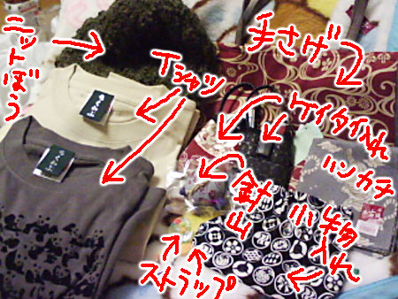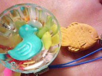 今回は、結構買ったかも(^^ゞ 必ず立ち寄る処はモチロンのこと、今回は小物雑貨類が多かったような気がします。 毎回、流行りがあるんですが、今までだと ・猫写真(これは今でも多い) ・和柄もの ・「書」っぽいもの(水墨画タッチとか…) 等々。 で、今回多く感じたモノは ・偽スイーツもの ・樹脂で固めた雑貨 特に樹脂で固めたモノはとても増えたと思います。 カコイイもの・カワイイもの色々ありましたが 私も1個だけ購入。 左の青いアヒルが入ってる物は、本物のお菓子(ラムネ?)を 樹脂で固めたものだそうです。 もっとカッコイイのとかあったんですけどね、 なにしろ高いので(^^ゞ(^^ゞ(^^ゞ 今、羊毛フェルトに少し夢中になりつつあるので 和物の雑貨でも作って、来年のデフェスとかに出展できたらいいなあと 妄想膨らましておりますデス(^^ゞ (ただの妄想なので予定は未定なんですが…) デフェスは見るのも出るのも楽しいです(^_^)ニコニコ (私信) >マリン嬢 ぃょぅ!元気? そっちにツッコミコメを残そうかと思ったらブラウザが落ちるので 結局書けなかった…_| ̄|○ たぶん私のブラウザが古いからだと思います(^^ゞ だってシステムが古いからブラウザも新しいのが使えないんだもんヾ(´▽`;)ゝエヘヘ でもさー、アタイはそんなに丁寧な箇条書き日記じゃないよ(笑) ホントに箇条書き(笑) 写真なんか挿入しててスバラシー!!! (11/8) >●クネさん わーいvvご無沙汰しております!! ぎゃーーー!!なんですってぇぇぇぇぇぇぇ!?!?!!?!? いらしてたんですね…_| ̄|○ このコメント見たのが、家に着いてからだったんですよ…_| ̄|○_| ̄|○_| ̄|○ また、出展されることがあれば是非、是非に教えて下さい!! くっそー!惜しいことをした…(TДT) (11/9) >●オさん おはようございます♪ 変なプレゼント指定ですんませんでした(^^ゞ あ!やはり、メール!!!(゜◇゜)ガーン 届いてなかった…と思いますヽ(`Д´)ノウワァァァンン ホントすみませんm(__)mm(__)m あまりにも不安定なので、この拍手とメールのみにしました。 そうなんですよ!「しょうゆ味キットカット」。 見た目ホワイトチョコなんですけど、ほんのりしょうゆ味で、 甘味も控え目でかなり美味しかったですvv そちらは「ずんだ」なんですねvv 私、スンゴイ枝豆好き&ずんだ好きなんですよ(笑) 数年前に山形県の赤湯温泉へ行ったことがあるのですが そこで初めて本場の「ずんだ餅」を食べたのですね。 そしたら凄いおいしくって、いままで食べてたヤツは ただの緑色のアンコだ!!って思いました。 ちゃんと豆の味がしっかりしてますよねっ!(興奮) こっちのは豆の味なんてしませんよ!やたらと甘い。 興奮してずんだの話ばかりになってしまいました(^^ゞ(^^ゞ ●オさん、リラクマお好きなんですか?( ̄ー ̄)ニヤリッ 長々失礼いたしました(^^ゞ |