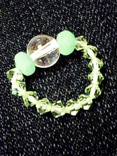 誰でも出来る、超簡単なリングを作ったんですが、 この緑のビーズ、光源によって色が変わります♪ 白熱灯 → 薄い赤 蛍光灯 → 緑 日 光 → 透明(薄いグレー) (!o!)オオ! なんてステキ! ビーズのサイズは4mmのしか無かったんですが 出来ればもう少し大きめのがあればいいなあ… ※調べたら8mmというのがあるみたいなんだけど なかなか売っているところが無い…_| ̄|○ガクリ とにかく、どんなカンジで変わるのかが見たくて買ってみました。 で、自分用にクォーツとムーンストーンを混ぜてブレスレットを作り 余ったビーズで作ったのが上記のリング。 真ん中の石はクォーツ、左右のはアクアマリンです。 ビーズがソロバン型なのでリングにするにはちょっと痛いかしらん? でも色が変わるなんて、ちょっとステキvvv 指輪でも良いですが、ペンダントヘッド代わりにしたり ストラップに付けてもオモシロイかなと思ってます。 PR |