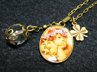 天使のイラストをレジンで固め、クローバーとクオーツを添えてます。 色は金古美。 全体的に小さめなネックレスです。 ここからは箇条書き日記で(^^ゞ うぃるこむ、大丈夫なのかしらん?とりあえず様子見マス。 会社の引っ越しですが、私が聞いた話では「10月中に引っ越し、11月1日からは新事務所で活動」だったのに実際の予定は「10月10日11日12日に引っ越し、10月19日から新事務所完全移転」なんだそうです。ナンダヨー!!最初に聞いた話より約2週間も早いじゃないかー!(苦笑) そんな状況なので、今は仕事よりも移転の作業の方が忙しい事実。移転ハガキとか名刺・封筒・伝票とか(^^ゞ もうダイエットしんどいし…(駄目なヤツ) 先日話したタグより商品を入れる袋に貼るシールを作ってマス(^^ゞ袋留めなので、セロテープでもいいのにねえ(^^ゞ(^^ゞ でもタグはモチロンやる方向で♪ 今朝見ていた『おはよん』で、レギュラーのアナウンサー(元モデル)さんが、今日で終わりだと知ってちょっとビックリした(笑) そうだ、今日は親父と大喧嘩した夢で起きたんだった(目覚め悪し) 今週末の実家ゴハンを乗り越えなくては!! ゴハンは乗り越えたいのに、作らなくてはいけない、このフクザツな思い(笑) 腹が減ってるとイライラしますな(^_-)-☆ 「デトロイト・メタル・シティ」の7巻が遭難してます。 腹減ったナァ〜(2回目) 東京ガスのCMで信長が復活してた!!いやっほう!↑最近一番ビックリしたこと(笑) (返信)●ok様>こんにちわッス(ロ_ロ)ゞ体力が落ちた分、やはり食べないとダメですよ〜●okさんは!!やっぱり肉を食べて、タンパク質を摂取!!→筋肉つきますヨ。デフェス近いのですね♪遊びに伺います!!何か買おーっと♪♪羊のアクセサリーに反応してくださってありがとうございますm(__)m 別に銀の羊でもカワイイと思うんですけど、自分の中では金の羊、何故なのかしら(^^ゞありがとうございました!! (私信)●美さん>そちらはまだ暑いんですか〜。某山脈の麓だから涼しいかしらって思ったのです。(昔、夏に氷が降ったことがありました)本当にどこでもドアがあればいいんですけど〜。くっそー!!(笑)少しずつでも回復されているようで、本当に良かったです(^_^) |