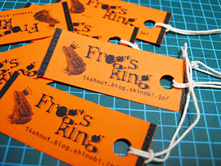 タグはこんなカンジになりました。 結構小さめに作ったので、そんなに邪魔にはならないかと思います。 私が持っているプリンタはモノクロレーザーなんですが、 レーザープリンタが使える紙って、かなり制限があるようで、 かといって外注で作るなんてとてもとても!なので ちょっと紙の色は妥協してしまいました(^^ゞ でも濃いめの色にしたかったので、それはだいたい思い通り。 強いて言えば、もう少し茶色っぽい紙がヨカッタような…(^^ゞ でもこれはこれでいいかなと思ってます。 糸は「たこ糸」なんです♪安いし丈夫だし♪ 台風は、皆さんの処は如何だったのでしょうか? 台風が来る前に会社にいればいいやと思い、 ただでさえ、出勤時間が早いクセに、さらに30分早く家をでました…が、 山手線は間隔があいてるし、しかも徐行運転だったので、 結局いつもと10分位しかかわらなかった_| ̄|○ガクリ しかも駅に着いたら、豪雨気味になってたし(泪) 家を出たときは雨さえも降ってなかったのに〜〜〜〜。 そんなもんサ…(−o−)y−゜゜゜゜゜ (私信返し) >Aさん 見ましたか!いえい!!「ああん!NOBUNAGA様v」でしたよ!最初見たとき(笑)これもシリーズ化してたくさん信長様を出して欲しいものです。●ァブリーズのタキはなんかオッサンがリアルナのでちょっとサミシイ(笑) (10/8) >0時頃コメを下さった方 ●田(旧姓)さん?名前が書いてなかったので誰だか分かりませんYO。一応●田さんだと思ってレスします。(違う方だったら申し訳ないです)売り子の件!出展者パスが少ないので(実際私たちももう1枚買わないといけない)、できれば開催時間(11:00〜)に一般で来ていただく(すみません、入場料¥1000かかります)と大変助かります。手伝って頂くのにお金がかかってしまうんです(泪)終了時間は19:00。適当に帰っても、最後までウチラとダラダラしてご飯食べて帰るのも自由です。都合が悪かったり、「お金がかかるならちょっと…」と思われるなら、もちろんお願いする立場なので、ワガママ言いません!!来ていただけるだけで大変有難い!!でもムリに都合を合わせないで気軽に来ていただけるとウレシイです。…てなカンジです。どうですかね〜(^^ゞ(^^ゞ来週の17日に3人で準備合宿しているので、誰かの携帯に連絡していただくと話が皆に伝わってヨイかもです。 |