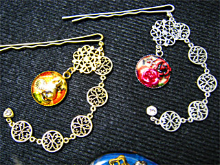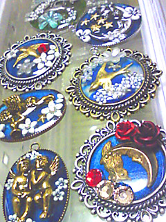 アメリカの天使の切手。 もう一つのは何処の国か忘れました(^^ゞ これはまだ、レジンを入れる前の状態。 この中に、小さなチャームでも入れようかと検討中です。 どちらも切手本物は使用しておりません。スキャニングしたものです。 本物を使うには、まだまだ修行が足りません(^^ゞ(^^ゞ(^^ゞ アンティークカードも、やはり高価な物なので、 使うことがあれば、スキャニング♪ …とまあ、色々画像も取り入れたりして奮闘中です。 昨日アップした、かんざしモドキは、少しデザインを変えました。 スカシの金物が重なって見苦しかったので (スカシ自体の模様は好きだったんですが(^^ゞ) デザインチェーンを二重にして、より「かんざし」っぽくしてみました。 お団子の髪型に挿してもいいかな(^_^) 自分の髪が長ければ、使ってみるんですけど、 完全にショートなんでムリ…(^^ゞ なのにヘアピン作成(笑) (7/2) >●okサマ モッフルモッフル!!(笑)夜のお茶会ですか!!(笑)Sさんにお話ししときますデス(^_^)ワーイワーイ!!アクセサリーは本当に悩みます(^^ゞ(^^ゞまあ、デザインなんてほぼ自己満足の世界なので、悩んでも…とも思うのですけど、売るからにはねぇ〜ヾ(´▽`;)ゝエヘヘしかし自分が一体何処へ向かって進んでいるのかがイマイチはっきりしてません(^^ゞ(^^ゞ(^^ゞ >兎店長 あのカエルはKROMER社ですか〜!(!o!)オオ!先日も仰ってましたが、どこがB級品…って思っていたら、前足の指先の吸盤部分が焼く前に折れてしまって、その折れた指先(吸盤)が、指と指の間にくっついたまま焼かれていました(笑)でもよーくみないと気が付かないですよ!それもまた味ですvvありがとうございましたm(__)mでも本当にバナーとソックリ!(笑) >●オさん わー!!オヒサシブリデス!!そしてお疲れさまでした!!お仕事もきっとお忙しいことと存じます。体調だけは気を付けてくださいネ!!また戻られて私のことを思いだしてくださって、ご連絡頂ければ嬉しいです(^_^)ではまた〜(^.^)/~~~(アクセサリーブログになってしまってホントすみません(^^ゞ) 私信返し(笑) ありがとうございます!m(__)mこういう処でも人気の絵柄はスグに売れてしまうんですね(^^ゞしかし、動物1000種で¥5,360(特価)しかし虫とかも入ってるんだよなー(^^ゞ(^^ゞでもお買い得ですよね〜(゚ペ;)ウーン検討してみます〜いつもいつもスミマセン(^^ゞ(^^ゞ(^^ゞ |