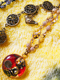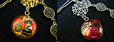 「かんざしなんて付け方わからないヨ!」という方に!(笑) あとは何に使えるだろ?(笑) 栞…?(笑) 私はよくヘアピンを栞に使います。 本には良くないですかね(^^ゞ もちろん、借りた本や大事な本には使いませんが。 レジン部分のアップ。 バックには和柄の古布を敷いてます。 左がネコで右がバラ。 両方とも「古美」系の色で仕上げています。 ……ちょっとだけ、デザイン変更するかもしれん…(^^ゞ 最近は、固まったレジンに装飾を施す作業ばかりしてます。 次回のレジン封入作業の準備はしているんですが なんか慌ただしくてチトやりにくい環境(^^ゞ でもスグに作業ができように準備だけは着々と進んでます(^_^) しかし、作業をすると時間がアッという間に過ぎていきます。 お陰で寝不足…(_ _)(-.-)(~O~)ファ…(~O~)(-.-) 仕事が暇だったら眠ってしまいそうだ(笑) (実際、社長の長男君はヒマだと寝てる(笑) (7/1) >●宵さん トゥーッス!歳が一つ増えますた(泪)そうなんですよ!カエルのピッチャーはブログと一緒!!童話で「かえるの王さま」があるから、きっと似たようなカンジの物は多いとは思います(^_^)KROMER社のものかどうかはちょっとわからなかったです〜(^^ゞレジンの感想もありがとうございますm(__)m色々考えてチャレンジしているんですけどね〜。なんかコテコテですかね??古切手。パケットは知っていたんですけど、何が入っているかとか、消印がね(^^ゞ格好良く消印が入っているならそれはそれでいいんですけど、そんなのムリだし…ヾ(´▽`;)ゝエヘヘ ツネット69さん、拝見しました!!安い!!安いですよね!アンティークカード。ちょっと検討してみますvvvやっぱりスキャン推奨ですよねえ(笑)ありがとうございました〜〜〜(^.^)/~~~ |