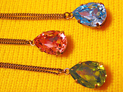 銅古美のチェーンにヴィンテージのスワロのみを付けたネックレス。 スワロのサイズは天地14mm×左右10mm。 個人的には、一番下のグリーンが好きです。 たしか色の名前は「オリーブ」だった気がする。 スワロの店へ行くと、なんかトキメク(笑) なんといっても色が!!キレイ!!! ![]() ![]() ![]() キラッキラ☆ミよね!☆ 見ていて飽きません。 レジンにスワロを閉じこめたら、スワロが勿体ないのかしら? 今度チャレンジしてみようかと思います。 ↑実際、やってみました… 結果、スワロとレジンの光の屈折感が同化してしまって スワロの立体感が無くなってしまいます(^^ゞ(^^ゞ スパンコールが入ってる見たいなカンジになってしまいました_| ̄|○ガクリ 透明のスワロには、色がないので、何処にあるかもわからない状態に(^^ゞ (゜◇゜)ガーン イベントにも出てみたいんです…。 そういえばCOMIC CITYでも雑貨類取り扱ってるんだよね(^^ゞ (゜ペ;)ウーン まあとにかく秋のデフェスが目標!! まだ決定ではないのですが、友人のお店に委託販売をしていただこうかと(^^ゞ 決まってもダメでも後日紹介できればいいなあ。 (4/12) >●さ婆 ドモ!ご無沙汰!!忙しそうですが体調大丈夫ですか?ブログ見たけど、競馬やってんの?(笑)桜花賞は如何でしたか?そうそう!!T先生やめてしまったのですよ!!!!!スゲーショック!!さすがに静岡の病院は遠い…(^^ゞまあ都内の病院だとしても、今の病院が内科とセットになってるから、別の病院へ行くのがメンドクサイしね〜〜。●かみ嬢、そうなんだ…(泪)何か光明があるといいんだけど…。またお見舞いに行こうかしら。行く?何にもできないけど、気晴らしにでもなればいいかなって。 >ビョンホンの妻(笑) マユ様もお読みになってますか!!あれは本当に面白いです!!(オススメ!!)さすがに黒執事は読んでないでしょ(笑)そうなんです!!T先生は他の病院へ行ってしまいましたヽ(`Д´)ノウワァァァンン仕方ないよね〜こんどのH先生に乞うご期待!(おいおい)でも、あんなに見た目が医者っぽくない先生もそうナカナカいないと思われます(^^ゞなので、今度の先生はまあ普通なのではないかと…(勝手に予想(笑)アメブロってさー、macの古いOSってダメそうじゃん?他の処もそうなんだけど、管理画面が古いOSだと入力できないことが多くてねえ…でも前向きに検討!!脳内は万年お花畑ですがなー!(笑)あ!ビョンホンは遠慮しておきます(笑)あの目ヂカラに肩こりそう(笑) |