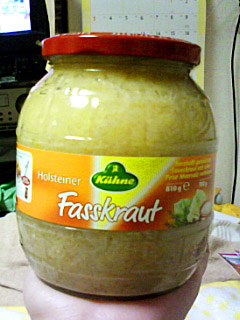 ドイツの料理。 あの「酸っぱいキャベツ」のことですよ。 「ザワークラウト」というのも「酸っぱいキャベツ」という意味なんだそうです。 これ、結構好きなんですね。 しかもキャベツから出る自然の乳酸菌(酸っぱい素)のお陰で 風邪予防・免疫力アップの効果があるそうです。 そして、キャベツだけなのでもの凄い低カロリー!! これは作って食べるしかない!!と思い、 レシピ等を調べたんです。 材料は、キャベツ、塩、香辛料…のみ!(!o!)オオ! 嗚呼なんて簡単なの!!って思ったんですが、 「夏場なら5日間、冬場なら10日間程度、常温で放置」 え〜!そんなに待つのかあ〜。 そうよねー、自然に乳酸発酵させるのだから(^^ゞ それよりも、私としては 「ちゃんと発酵してくれるのか?」 の方が気になります。 「発酵」じゃなくて「腐敗」だったらイヤだしな…。 と思い、結果、上記の写真の瓶詰めザワークラウトを購入しました(^^ゞ(^^ゞ 800gちょっとで550円位でした。 一度に全部食べることはない(多すぎ)なので安いと思います。 とりあえず、これを食べます。 それでハマったら、チャレンジして作ってみようかと(^^ゞ(^^ゞ |