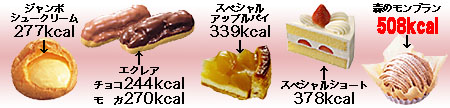コージーコーナーのジャンボシュークリームvv 安くて美味しいですね。 これをよく社長の奥様からいただくのですが、 なぜか私の減量期間とかぶります(笑) 賞味期限が持つものとか、生菓子でなければ、家へ持ち帰るなり、 実家へ持っていったりするのですが、生菓子はイカン!(笑) 昼ご飯がわりに食べようと、「ならばカロリーはどのくらい?」 と思い調べました。 ジャンボシュークリーム 277kcal 思っていた割にはカロリー低めでした。決して低いカロリーではないですが(^^ゞ 400kcalぐらいは絶対にあると思っていたので。 実家でもよくコージーコーナーのケーキを買うんです。 で、よく買うケーキのカロリーも調べました。 スペシャルショートケーキ→父親が好き 森のモンブラン →母親が好き 森のモンブラン、 カロリー高ッ!! ビックリ!!( ・_・;) このショートケーキとモンブランは絶対に買うケーキなんです。 母親は、モンブラン自体が好きで、コージーコーナーでは ほぼ100%「森のモンブラン」を食べます。 しかし…このカロリーは…ヽ(`Д´)ノウワァァァンン ちなみに、この店で売っている フレッシュケーキ〈レギュラーケーキ〉での 500kcal超えのものは、 ミルクレープ 526kcal ナポレオンパイ 524kcal スペシャルチーズ 518kcal 森のモンブラン 508kcal ←第4位だよ!かーちゃん!! まあ、基本的に美味しい物はカロリーも高めよねー(^^ゞ でも美味しいんだもん。仕方ないジャン!!(苦笑) (1/25) >Aりおりサン た〜か〜の〜つ〜め〜(何故、今頃(笑) 詳細はメールにて!!(待て!次号!!) |